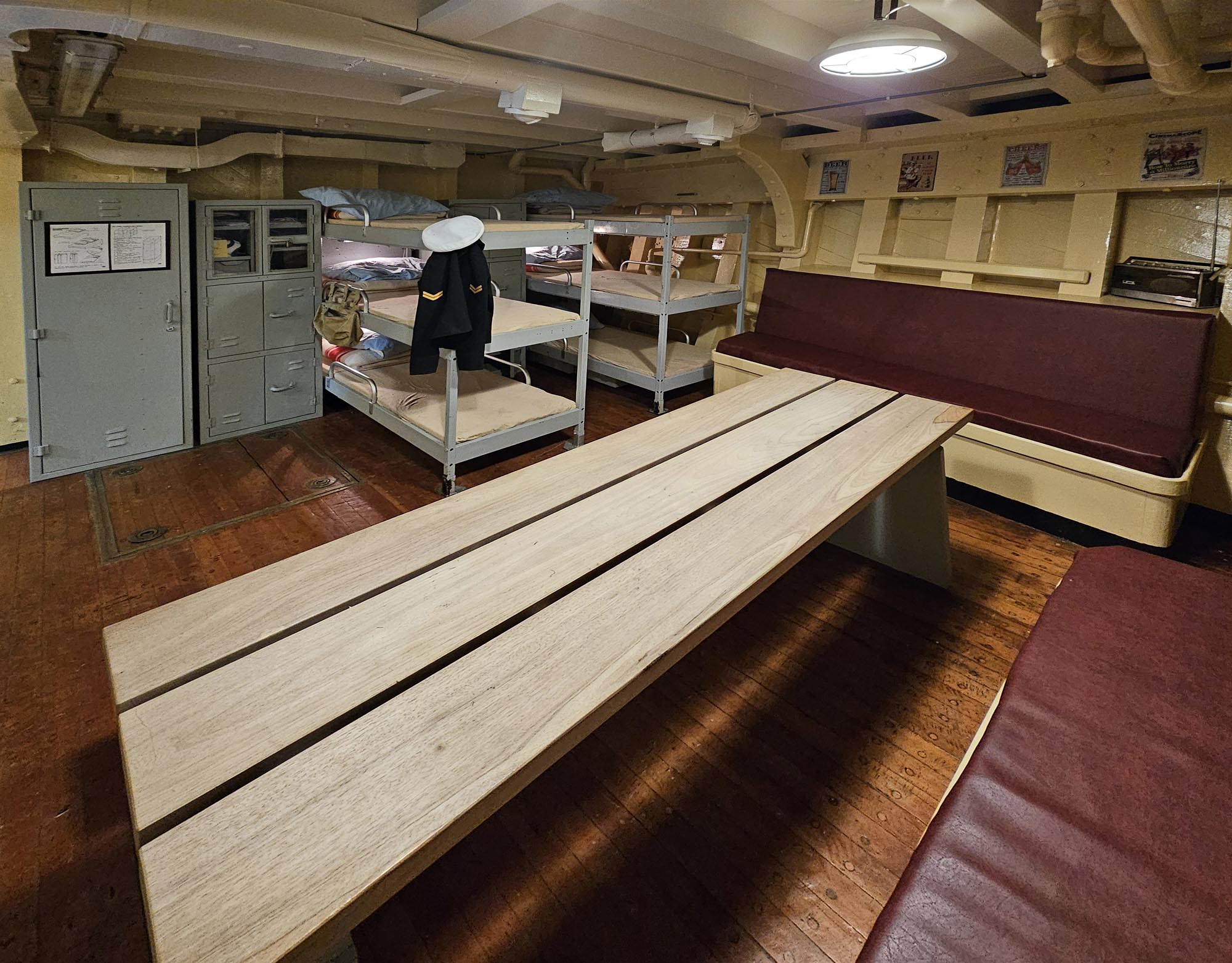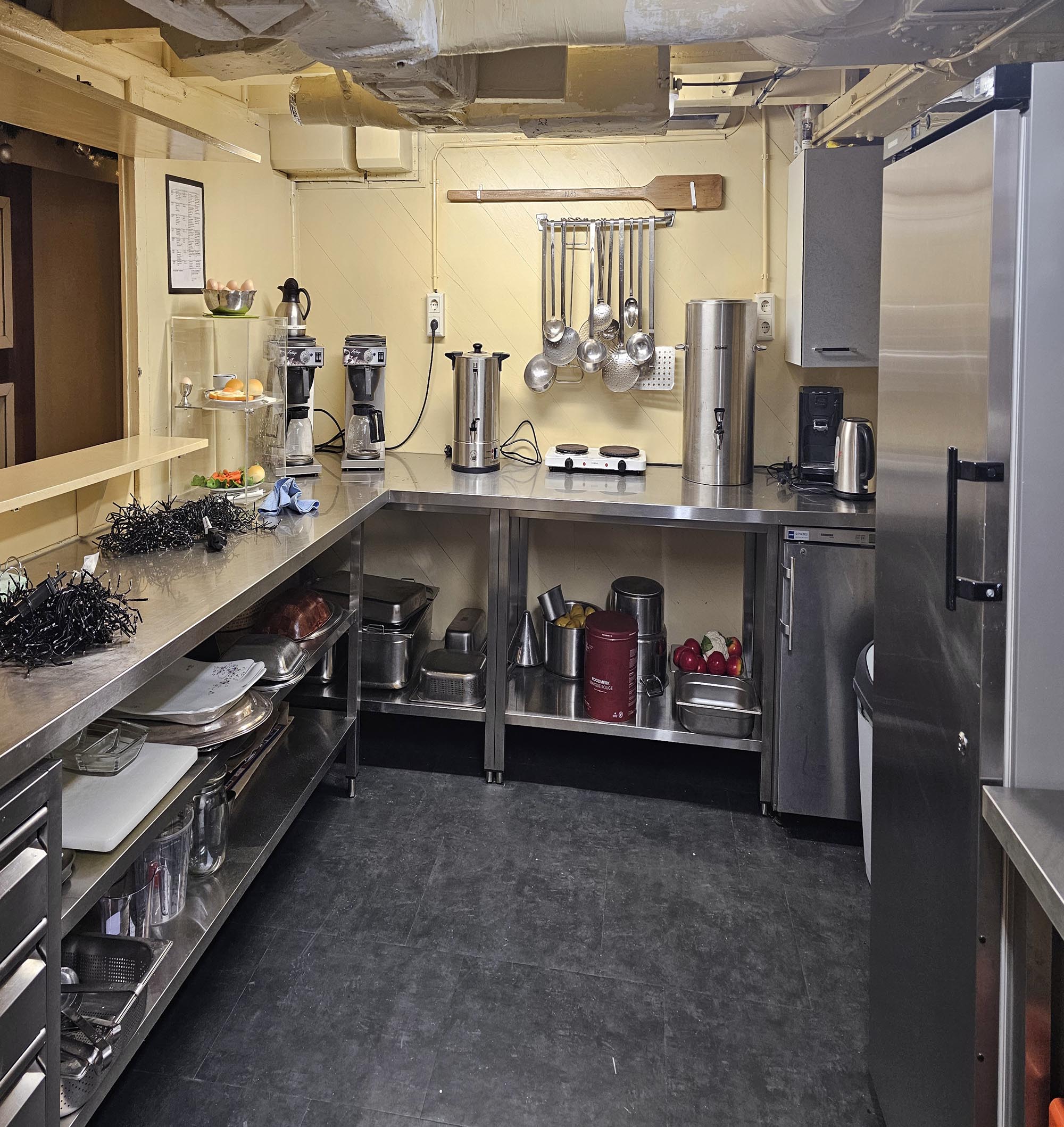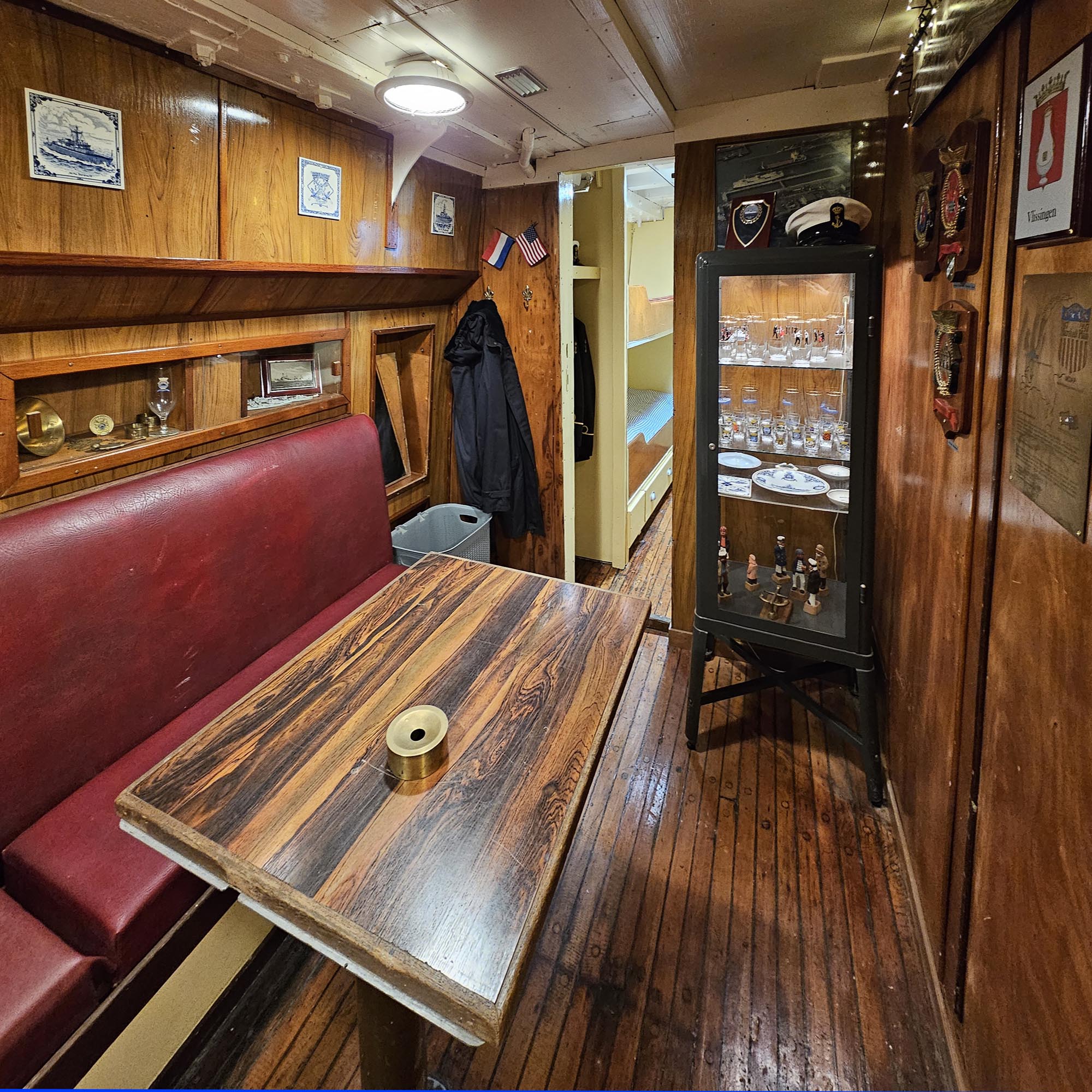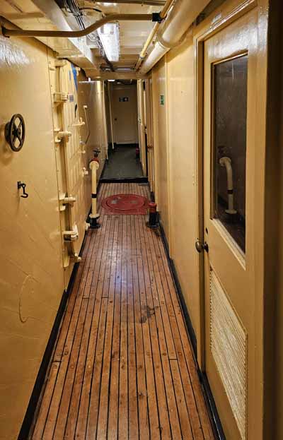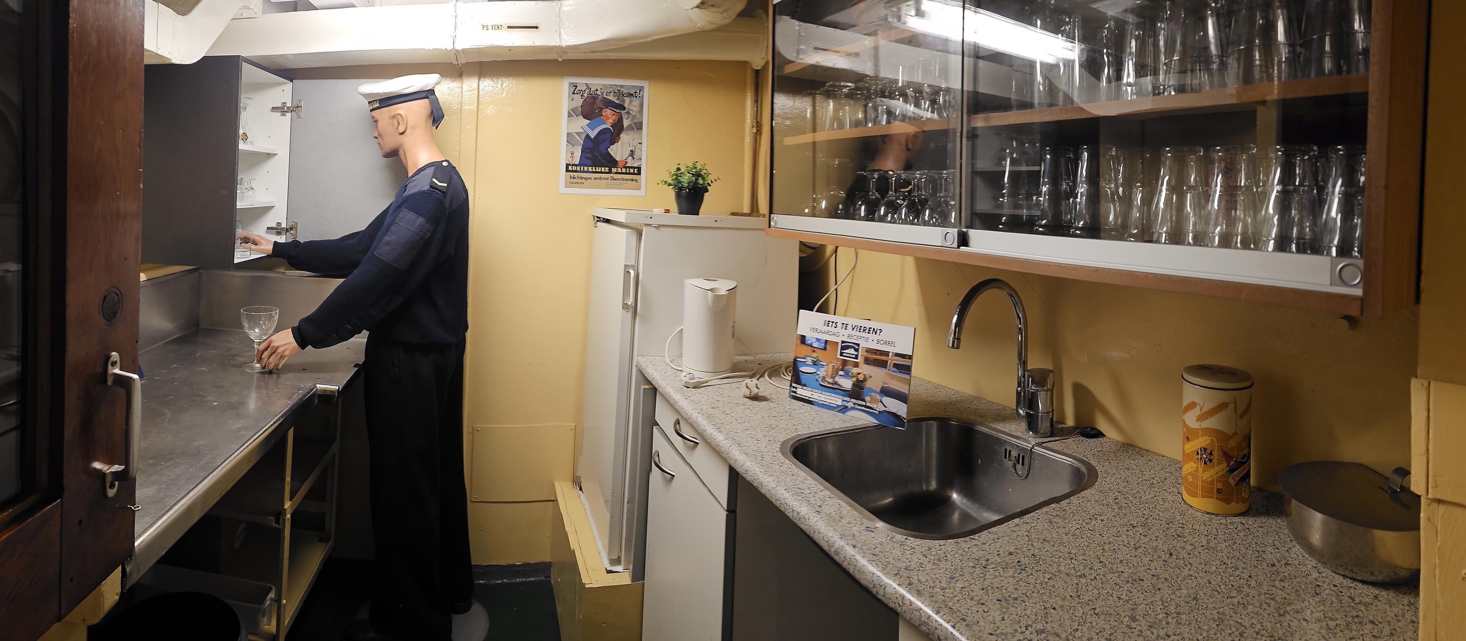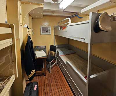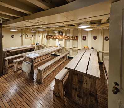 Minesweeper Ocean en torpedowerkschipDe MSO's waren redelijk luxueus, ze waren voorzien om een lange tijd op zee te zijn. Het hout gaf een speciale uitstraling aan de schepen. De nieuwere plastieken CMT's waren functioneel, maar niet mooi. Je merkt dat als je meer dan 10 jaar op de CMT's gewerkt hebt, en dan een gerenoveerde MSO bezoekt. De MSO's waren voorzien voor een 70-tal bemanningsleden, meer dan op de CMT's.Behalve tijdens een aantal proefvaarten en oefenvaarten werd het schip niet als mijnenveger gebruikt. Het schip behoorde tot de nederlandse mottenballenvloot en werd meer dan 10 jaar in bewaring gehouden. Als torpedowerkschip werd het schip van de mijnendienst gehaald en bij de onderwaterdienst geplaatst. Het schip werd gebruikt om de gelanceerde torpedo's op te sporen en weer gebruiksklaar te maken. Daarvoor kon het schip beschikken over een uitstekende sonar. Nadien werden de torpedo's opnieuw in de onderzeeboten geladen. Het schip werd aangepast om de torpedo's te onderhouden en opnieuw gebruiksklaar te maken. Dit hield ook in het reinigen van de brandstofreservoir en het opnieuw vullen met Otto-II brandstof, een gevaarlijk en giftig goedje. Dit is een brandstof die geen oxidans nodig heeft. De technologie die aan boord gebruikt werd dateert grotendeels van de jaren 1950, maar werd in de loop der jaren aangepast. De navigatie gebeurde groetendeels met hyperbolische nagivatie via de Decca navigatie in de kustwateren van Europa en Loran-C voor de navigatie over de oceaan (waar een groter bereik van de zendstations nodig was, maar een nauwkeurige plaatsbepaling niet nodig was). In die tijd gebruikte men voornamelijk de log om de positie van het schip te bepalen, maar dit systeem gaf een fout die cumulatief steeds groter werd. De log was op zich wel nauwkeurig, maar mat de relatieve beweging van het schip ten opzichte van het water. De log is gebaseerd op het drukverschil op een buis die onder de kiel uitsteekt en gericht is naar de boeg van het schip ten opzichte van een buis die op dezelfde hoogte geplaatst is en enkel de waterdruk meet. De log is uitstekend om de relatieve snelheid van het schip aan te geven. Aan boord van het museumschip zijn er foto's hoe de situatie in 1953 was, want ondertussen is er veel veranderd. Voor het schip als museumschip gebruikt kon worden was er ook een asbestsanering nodig, waarbij alles verwijderd moest worden. Het artikel loopt verder op een volgende pagina: de nederlandse MSO's. |