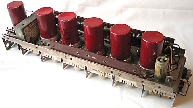 De buis was oorspronkelijk ontworpen als buis voor hoogfrekwente toepassingen in de televisies van voor de tweede wereldoorlog. Bij televisie is een grote bandbreedte nodig om bewegende beelden te kunnen overbrengen. Er moet dus gewerkt worden met hoge frekwenties, terwijl de buizen uit deze periode daar een veel te zwakke versterking hadden. De televisieontvanger was een rechtuit ontvanger en kon slechts één zender ontvangen, er was geen afstemming mogelijk. Door een extra electrode in de tetrode te plaatsen (een dynode die een speciale coating had om secundaire emissie te bevorderen) kon men de versterking van de buis verhogen. De dynode wordt op een vaste spanning gehouden van 150V, zoals het schermrooster. De electronen die de dynode raken veroorzaken een extra emissie van electronen, waardoor de anodestroom toeneemt. Iedere electron die de dynode raakt veroorzaakt de emissie van gemiddeld 5 electronen. Hoewel de dynode op een positief potentiaal staat ten opzichte van de cathode straalt de dynode echter electronen uit. Het schermrooster dat op eenzelfde spanning staat vangt daartegen electronen op. Door deze extra versterking heeft de buis een hoge versterkingsfactor van µ = 300 en ook de steilheid is zeer goed. Dezelfde buis werd eveneens gemaakt met een modernere buisvoet met contacten naar beneden, dat is de EE50. De buis had een hoge versterking, maar produceerde ook een sterke ruis, waardoor de buis eigenlijk niet geschikt was als eerste trap in een ontvanger. De buis had ook de neiging te verlopen door de veranderlijke secundaire emissie. ![]() Versterkerstrip voor de vooroorlogse televisies De buis werd in deze toepassing snel vervangen door de EF50, een meer traditionele pentode, maar een buis die aangepast was aan de hoge frekwenties die in televisies gebruikt werden. Het was voorzien dat de buis in televisieontvangers gebruikt zou worden, maar Hitler besliste daar anders over. De reeds gebouwde versterkerstrips werden als hoogfrekwente versterker gebruikt in radarinstallaties. De engelse radar gebruikte toen een lage frekwentie van 20 à 30MHz. De letter die normaal voorzien is voor buizen met secundaire emissie is de P, een buis die een dergelijke kode gebruikt is bijvoorbeeld de EPF80, een mysterieuze buis die geen toepassingen vond. De EFP60 werd in verschillende toepassingen gebruikt zoals computers. Als men de spanning aan de dynode aftapt, dan bekomt men een puls in dezelfde richting als de puls op de stuurrooster, een zeer nuttige funktie (de puls op de anode is omgekeerd). Dankzij de stroomversterking door de dynode kan de cathodestroom laag zijn: de schermroosterstroom is daardoor ook zeer laag ten opzichte van de anodestroom waardoor de buis een hoog rendement had. De electronenstroom van de dynode passeert niet meer via het schermrooster, zoals te zien is op de afbeelding links hieronder.