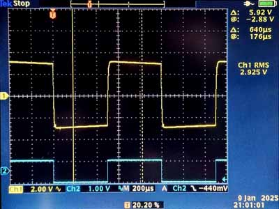 De skoopbeelden zijn heel goed en je zou denken dat je een perfecte versterker hebt. Maar met een blokgolf heb ik sterke gedemte oscillaties omdat de versterker geen frekwentiebeperking heeft. De frekwentieband loopt rechtdoor tot 50kHz.