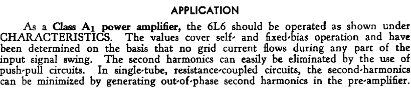 Vervorming in een single ended eindtrapDe vervorming die door een single ended eindtrap veroorzaakt wordt (enkel de even harmonischen) kan verminderd worden door een tegengestelde vervorming in de voortrap. Dit kan men bijvoorbeeld bereiken door de polarisatie van de voortrap zodanig in te stellen dat de anodespanning laag is. Een push pull eindtrap beperkt automatisch de even harmonischen. De uitleg is te vinden in de data sheet van de 6L6. Een betere manier om de vervorming te verminderen (even en oneven harmonischen) is om een tegenkoppeling te gebruiken, maar daardoor wordt de versterking lager en heeft men meestal een extra versterkertrap nodig.