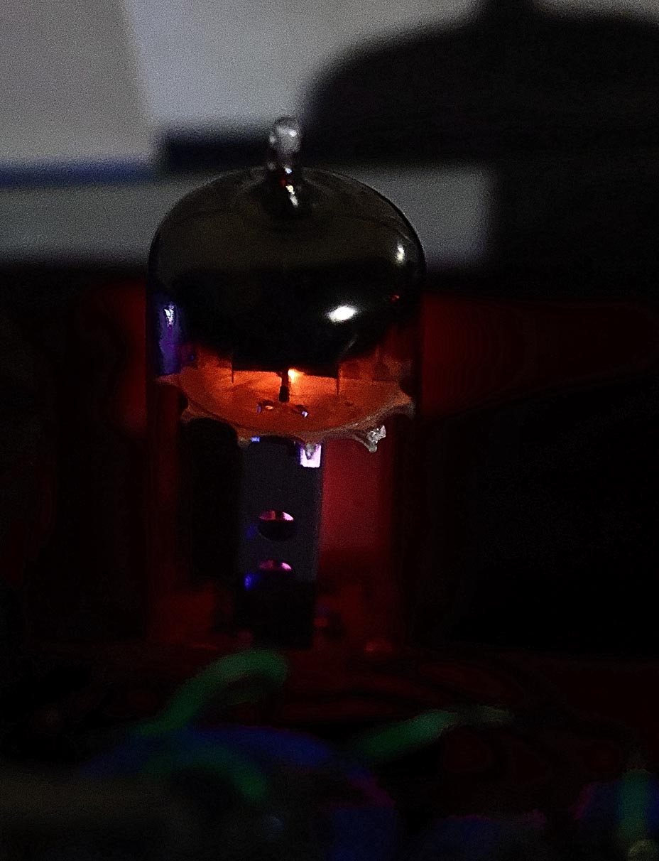 Door de contaminatie van het stuurrooster kan het werkpunt van de buis verschuiven, zodat de gloed meer zichtbaar is. In sommige gevallen is de verschuiving van het werkpunt zo sterk, dat de anode rood gaat gloeien. Dit is een teken dat de buis overbelast wordt (in dit geval moest een PL508 (dissipatie van 12W) 18W dissiperen, zie foto rechts). Meestal gaat dit gepaard met een hoorbare brom.