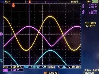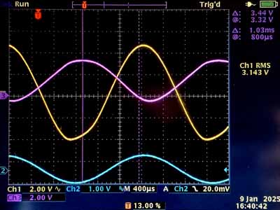 Rechts heb je twee skoopbeelden van een single ended testversterker met PCL84. De testschakeling kan je op die pagina zien. We hebben in het
