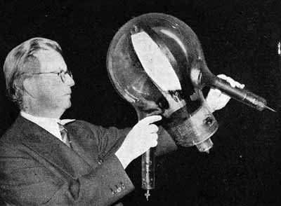 John Logie Baird lag aan de basis van de mechanische televisie met nipkovschijf, maar heeft ook onderzoek gedaan naar kleurentelevisie. Het probleem was toen een beeldbuis te vinden die kleuren kon weergeven. |