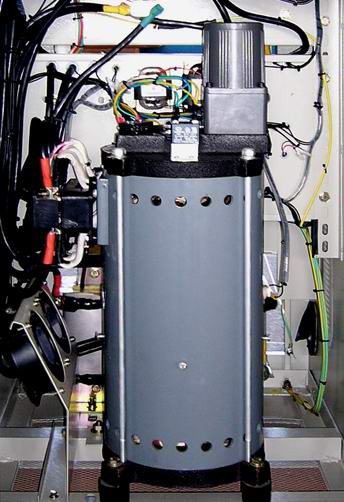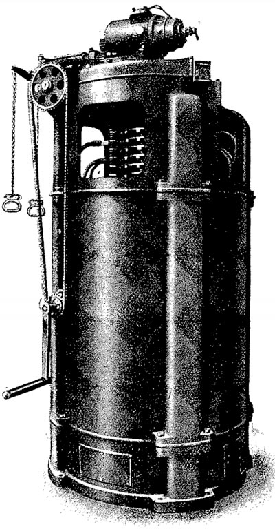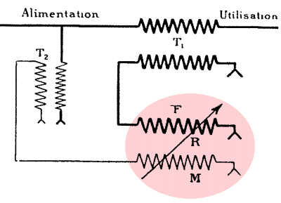 | Le régulateur à induction est un type particulier de transformateur réglable. Il s'agit d'un transformateur rotatif mais qui n'utilise pas de contacts. Le secondaire peut tourner par rapport au primaire. |