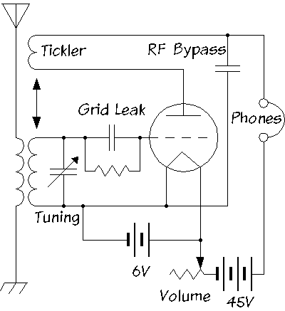 Les premiers postes de radio apparaissent dans l'entre deux guerres. Les lampes de l'époque avaient un gain relativement faible et étaient extrèmement chères. Il fallait donc réaliser un récepteur avec le moins de composants possibles. |