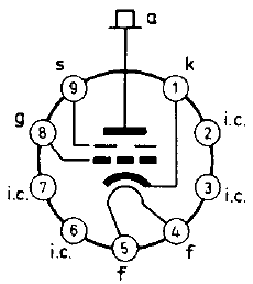 Le blindage est mis à la masse et n'a pas d'influence sur le flot d'électrons. Le blindage n'est pas une grille écran comme avec les tétrodes. Le fait qu'il ne s'agit pas d'une vraie grille est indiqué par le symbole de la lampe.