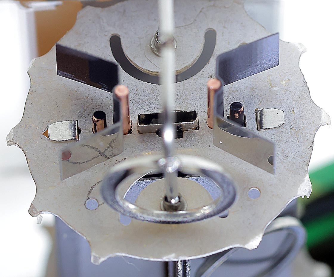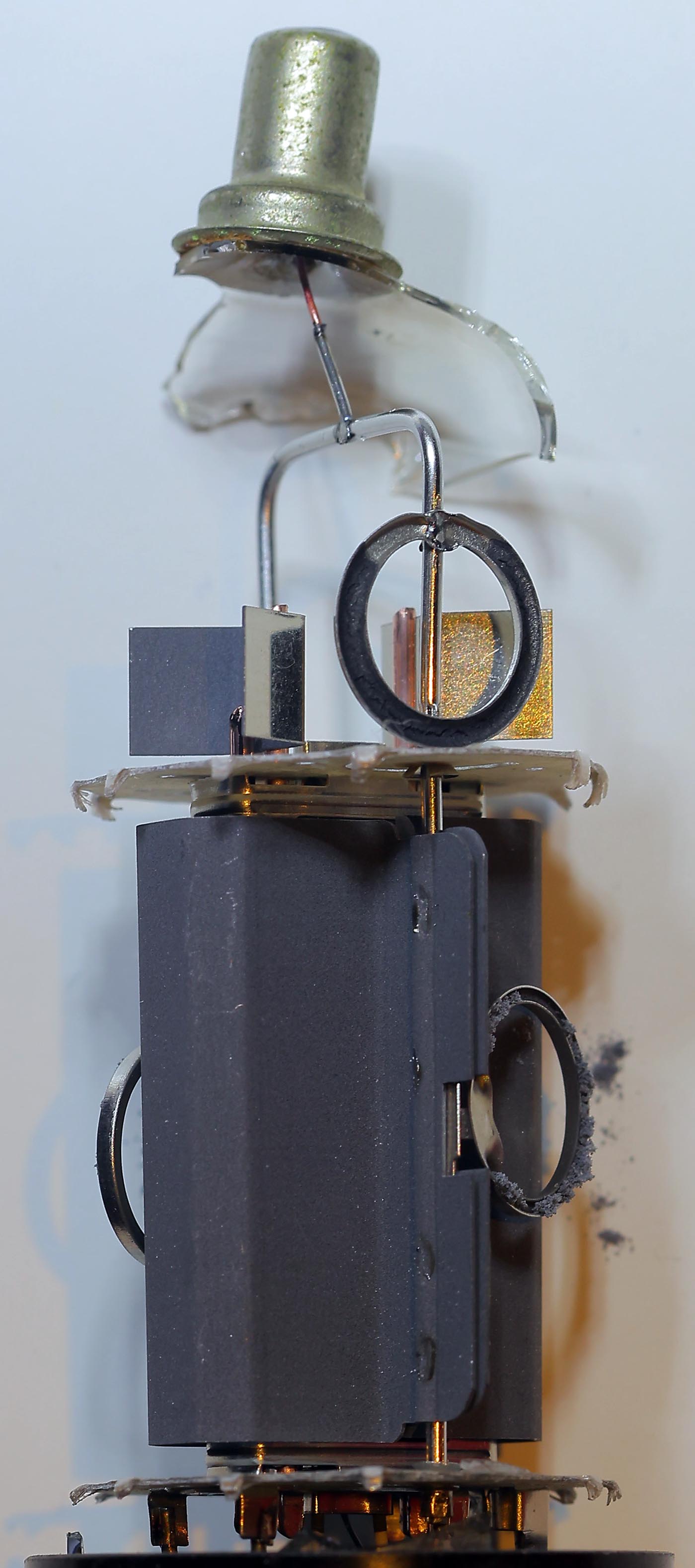 Image 1 à droite: Les micas ont une découpe pour éviter les cours circuits vers l'anode. La tension anodique maximale est de 7kV, c'est la même tension pour les trois tubes de déflection ligne. Le PL36 a été utilisé dans les téléviseurs avec une diagonale d'écran de 14 à 17 pouces et angle de déflection de 90°. Le PL36 n'était pas utilisé dans les amplificateurs audio à cause de son instabilité. On le retrouve uniquement dans quelques amplificateurs circlotron. Les rares amplificateurs qui utilisaient le PL36 comme tube de puissance push pull classique avaient un filtre boucherot sur l'anode (résistance et condensateur en série entre anode et masse) pour éliminer les oscillations parasites.