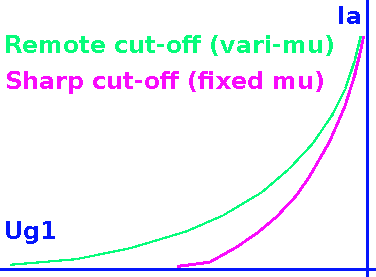 Les pentodes pour signaux faibles (F) avec un numéro de type se terminant par un chiffre pair sont des pentodes à gain fixe qui ne peuvent pas être utilisées pour réglage de l'amplitude du signal (controle automatique du gain).