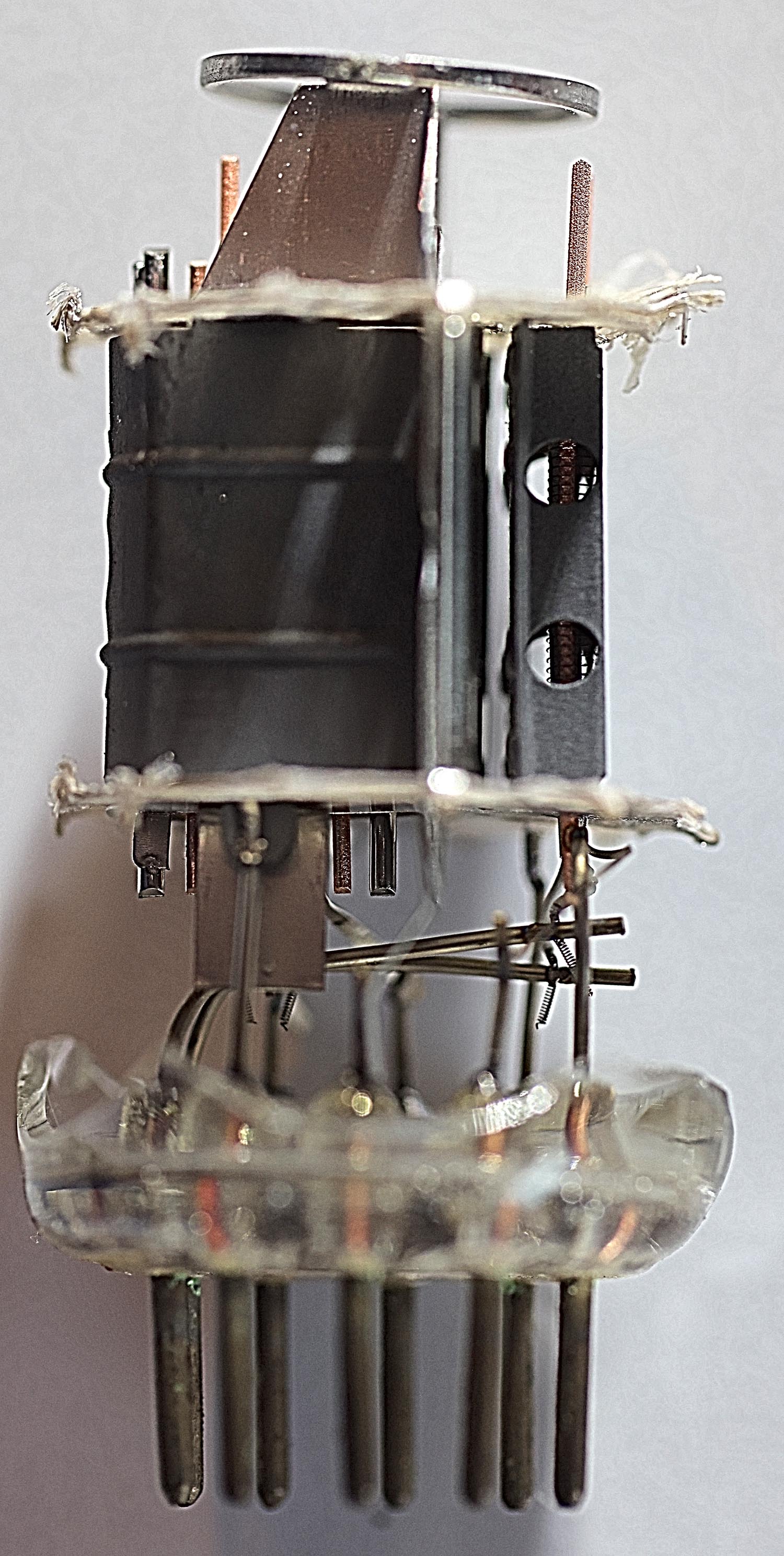 Les deux cathodes ont environ la même taille, avec celle de la triode même légèrement plus grande. Le courant maximal de la triode est de 14mA, celui de la pentode de 10mA. La grille de controle et la grille écran se trouvent près de la cathode. La grille suppresseuse se trouve entre la cathode et l'anode et son influence sur le flot d'électrons en provenance de la cathode est faible.