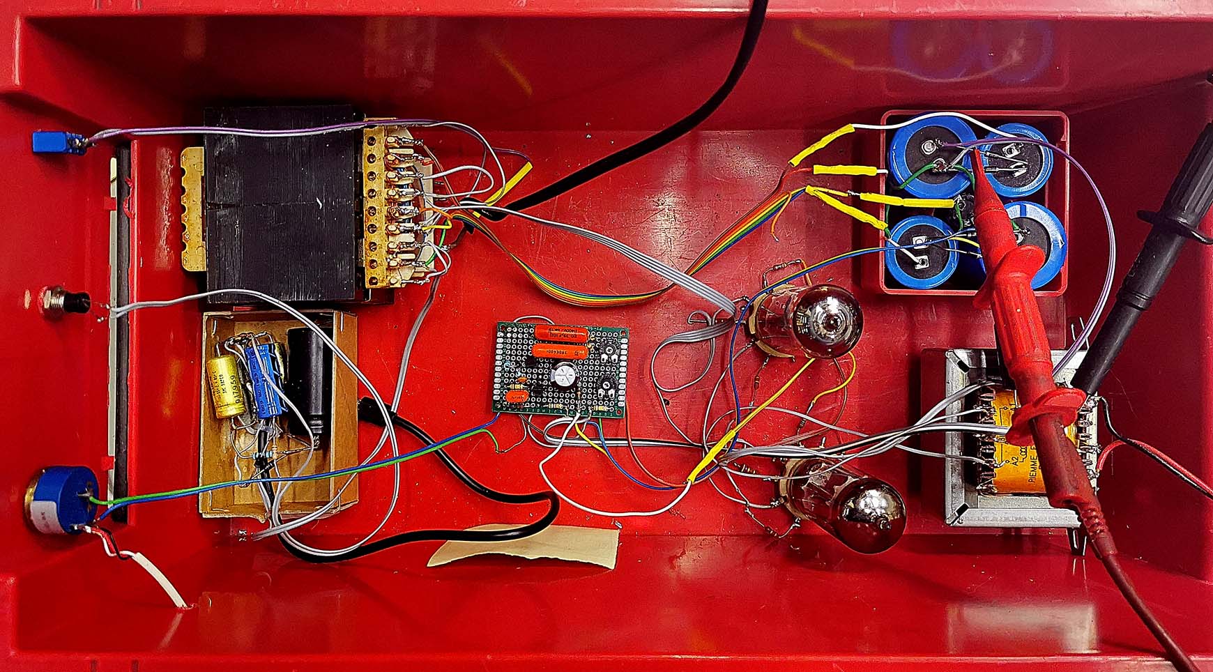 Comparaison EL508 et EL84Les deux tubes ont la même dissipation, mais le PL508 se tire mieux d'affaire, même si à la puissance maximale la dissipation du PL508 est dépassée (le PL508 peut fournir une puissance plus élevée que le EL84, jusqu'à 40W dans un ampli push pull).Le rendement du tube est meilleur, avec un courant de g2 de 4.4mA par tube au maximum (3% du courant anodique, tandis que pour le EL84 il est de 11%). Le tube devient moins brulant que le EL84. Avec sa grande cathode, le tube doit déjà être très usé avant que cela se remarque quand il est utilisé dans un amplificateur. Les PL508 ont une impédance de sortie très basse, l'amortissement est donc très bon (caractéristique pour de nombreux tubes de déflection) avec des basses bien présentes mais pas envahissantes. Attention, un étage de puissance avec des EL508 ne vous garantit pas un amplificateur parfait: j'ai fabriqué un ampli avec un son extraordinaire, puis un ampli suivant avec des composants légèrement différents qui donne un son désastreux. Comme j'utilise chaque fois le même module préamplificateur, ce ne peut être que le transfo de sortie et le placement des cables qui joue.