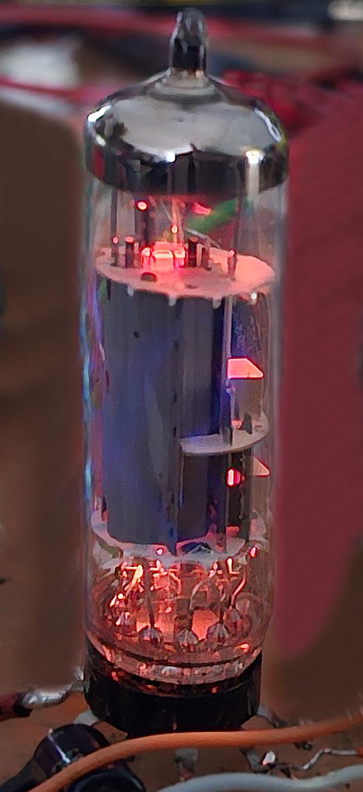La lampe à droite est une PCL86 travaillant à puissance maximale dans l'ampli single ended indiqué plus haut.