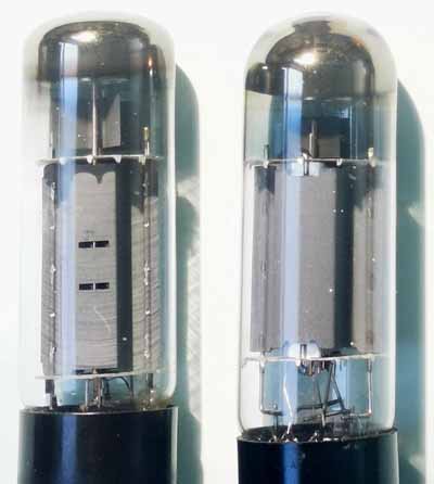 Différence entre les tubesDe nombreux tubes de puissance ont le même branchement et peuvent en principe être échangés. Utilisés dans un amplificateur de guitare ces tubes produisent un son différent, surtout quand l'amplificateur est utilisé à pleine puissance (overdrive). C'est la raison pour laquelle on utilise des tubes dans les amplificateurs de guitare.Il faut surtout lire les forums de guitare. On y parle des caractéristiques des différents tubes par des personnes qui ne s'y connaissent absolument pas. Certains sites tentent de donner des informations plus précises, mais à force de simplifier au maximum les informations qui sont données ne sont plus correctes. Un amplificateur de guitare n'a généralement pas de contre réaction et les distorsions dépassent les 10%. Mais ce n'est pas grave, au contraire, c'est justement ces déformations harmoniques qui forment le son typique des guitares électriques. On va par contre utiliser une contre réaction dans les amplificateurs hifi pour réduire les distorsions. Cela réduit également les différences accoustiques entre les différent tubes et c'est le but recherché: un amplificateur hifi doit reproduire le mieux possible le signal à l'entrée sans ajouter des harmoniques. A droite une comparaison du tube >EL504 et du KT77, deux tétrodes à faisceaux dirigés. Le EL504 que j'utilise dans de nombreux montages a une dissipation anodique nominale de 16W avec une dissipationde grille écran de 4W ou une dissipation de 8W avec une dissipation de 5W. Ce sont les paramètres de fonctionnement normaux du tube. Le tube est normalement employé comme tube de puissance dans l'étage de déflection horizontal ou il y a des pics de courant et de tension: c'est normal que les paramètres sont limités. La dissipation maximale est de 22W avec une dissipation de grille écran de 5W et ces valeurs peuvent être utilisées pour un amplificateur audio. Pendant des tests le tube dissipe 26W pendant quelques minutes, l'amplificateur produit alors une puissance de 30W. La plaque anodique du EL504 n'est pas plus petite que celle du KT77 (la largeur du tube est un peu moindre, mais cela diffère de fabricant à fabricant). J'estime que la dissipation maximale du tube est de 25 à 30W. Selon Genalex (le fabricant original de ce tube) la dissipation est de 25W (design maximum) et 32W (maximum absolu). Le circuit doit être conçu pour une dissipation maximale de 25W mais le tube doit pouvoir tenir le coup avec une dissipation de 32W. Chez JJ Electronic qui a repris la fabrication du tube la dissipation amximale est de 25W. J'ai remarqué que le tube devient très chaud à une puissance de 25W.