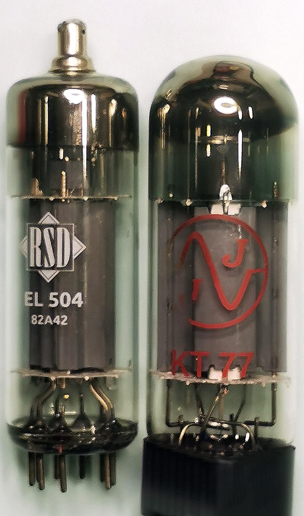| Le tube KT77 se trouve entre le KT66 (dissipation de 25W) et le KT88 (dissipation de 35W). Plusieurs firmes fabriquent ces tubes et la dissipation maximale dépend du fabricant. |