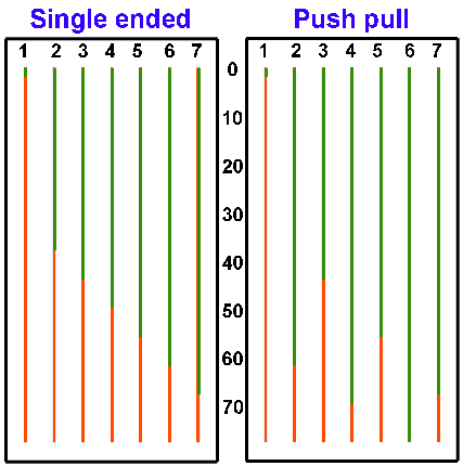 Le montage single ended permet en théorie une puissance de 50% de la dissipation dans le tube de puissance (en pratique 30% et souvent encore moins si on veut éviter les distorsions). Le tube doit nécessairement fonctionner en classe A qui est moins efficace, mais ce montage ne nécessite pas d'étage déphaseur.
