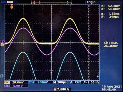 Ce que l'on voit par contre, c'est qu'un des tubes a une tension cathodique plus élevée que l'autre parce qu'il est moins usé que l'autre. C'est pour cette raison que l'on dit d'utiliser des tubes pairés dans l'étage de puissance d'un ampli. Le problème ne peut pas être réduit en modifiant la tension de polarisation au repos: les deux tubes peuvent fournir sans problème un courant de 6mA. Un des tubes a une émission réduite, ce qui limite le courant maximal qu'il peut fournir. Une différence de 10%-15% ne se remarque pas à l'écoute. Les distorsions augmentent par contre avant que la puissance nominale ne soit atteinte. Une telle condition ne peut être détectée qu'avec un oscilloscope. Quand on le remarque à l'écoute normale, c'est que l'émission d'un tube a chuté de plus de 30%. Un amplificateur qui utilise une polarisation par résistances cathodiques peut compenser ce défaut dans une certaine limite si l'ampli utilise une résistance cathodique par tube (découplée par un electrochimique de valeur suffisante). Une polarisation par résistances cathodiques implique un fonctionnement en classe A et un rendement moindre.