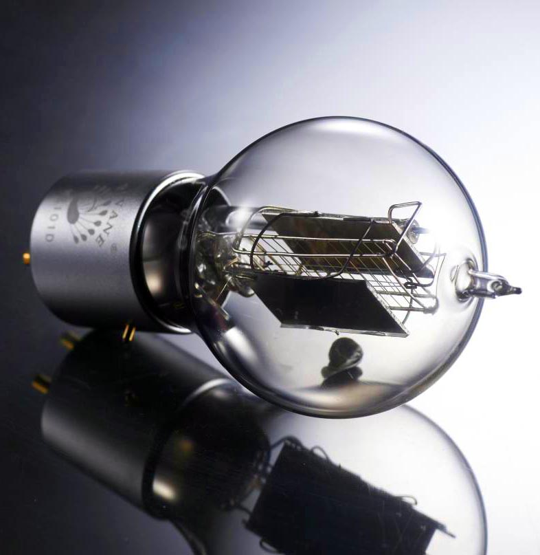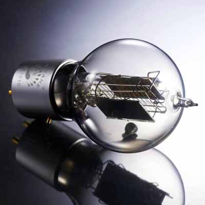 PSVANELa triode à droite est une triode moderne, construite par PSVANE, un fabricant chinois spécialisé dans les lampes de radio ésotériques. On trouve principalement des triodes à chauffage direct et quelques tubes modulateurs comme le 845, qui est un tube qui a été utilisé avant la seconde guerre mondiale comme modulateur AM.Le tube à droite ressemble à un tube fabriqué dans les années 1930 quand les techniques de fabrication étaient encore archaiques. Pour éviter que les électrodes se touchent, on les place à distance des autres électrodes (avec comme conséquence un facteur d'amplification très bas). L'assortiment de PSVANE est classé en trois catégories: