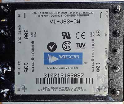 Il est possible d'utiliser des convertisseurs DC-DC haut de gamme pour fournir la tension de chauffage (ici de 24V). J'ai utilisé un Vicor VI-J63-CW dans un de mes amplis. C'est un convertisseur conçu pour être utilisé dans des appareils électroniques: il produit très peu de bruit à la conversion (mais cela n'enpèche pas d'utiliser des condensateurs de filtrage).