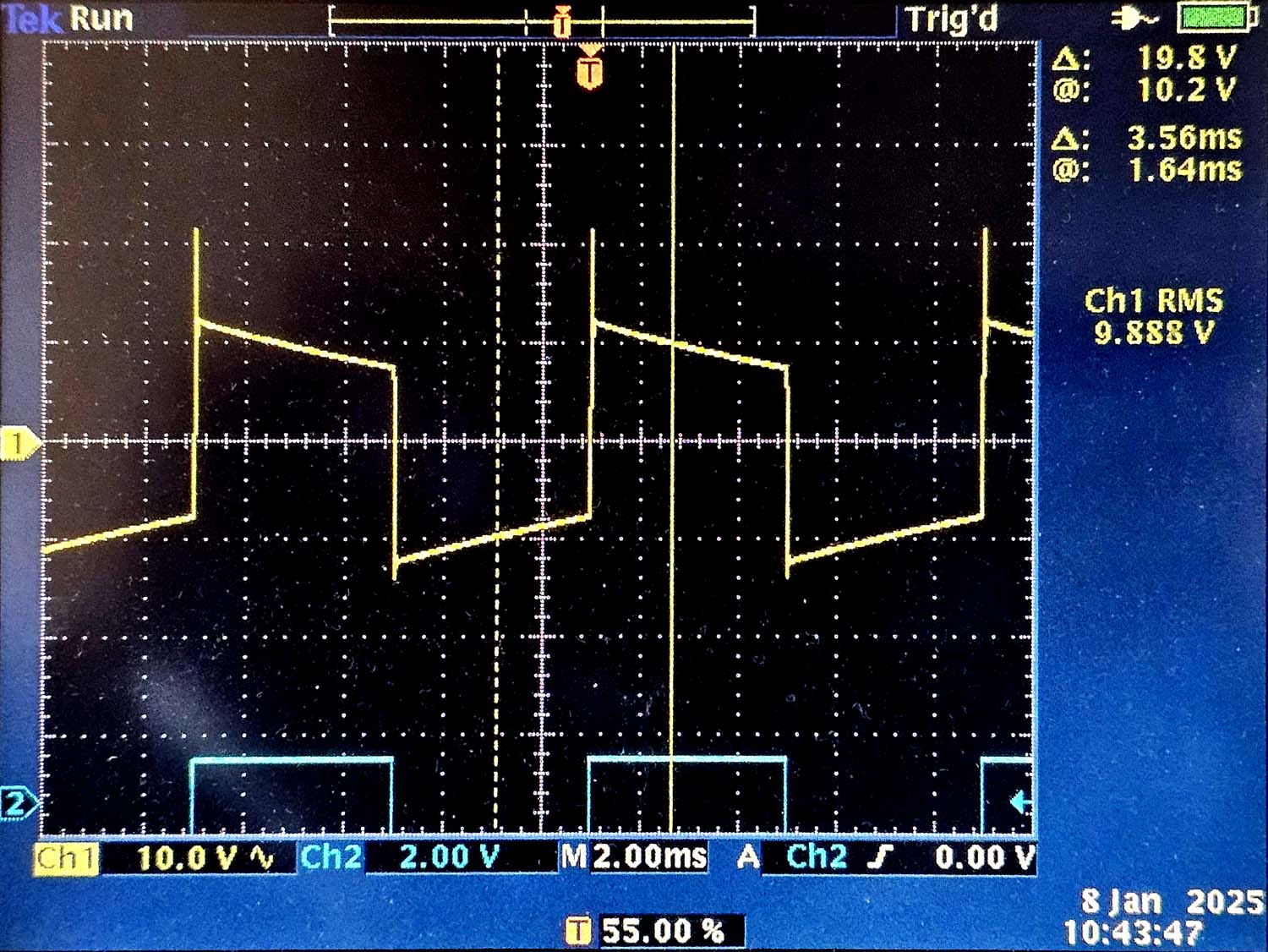 Quand on teste un amplificateur qui a tendance à osciller, on va directement penser à la contre-réaction. Une contre-réaction peut souvent augmenter un défaut présent (ce qui était également le cas ici). J'ai essaiyé plusieurs méthodes pour rendre un ampli plus stable mais cela n'a pas fonctionné. Il s'agit d'une faute asymmétrique: elle n'apparait que sur l'amplitude positive. On peut être pratiquement sûr que l'erreur n'est pas causée par la contre-réaction et que modifier la contre-réaction ne va pas résoudre le problème. La fréquence du signal en créneaux est de 125Hz, la tension effective (RMS) est de 9.9V, ce qui correspond à une puissance de 16.3W, environ 1/3 de la puissance maximale de l'ampli. Les pointes sont des oscillations amorties d'environ 22kHz. Les signaux en créneaux n'apparaissent pas dans la musique et le but d'un amplificateur audio n'est pas de reproduire de telles fréquences. Mais un signal en créneaux permet de faire apparaitre très rapidement les défauts d'un ampli, ici une oscillation asymmétrique amortie. L'amplificateur utilise une paire de EL508 par canal, pour une puissance maximale de 40W avec une tension d'alimentation de 360V (courant anodique en pointe par lampe: 154mA). Le son de l'ampli était normal, mais avec un très léger grincement aux fréquences les plus élevées. J'ai d'abord tenté de réduire les oscillations en plaçant de petits condensateurs dans le préampli et la contre réaction, mais j'ai rapidement remarqué que le problème se situait au niveaux des étages de puissance. En mettant une sonde au contact de chaque grille de controle des tubes de puissance je pouvais augmenter ou réduire les distorsions.