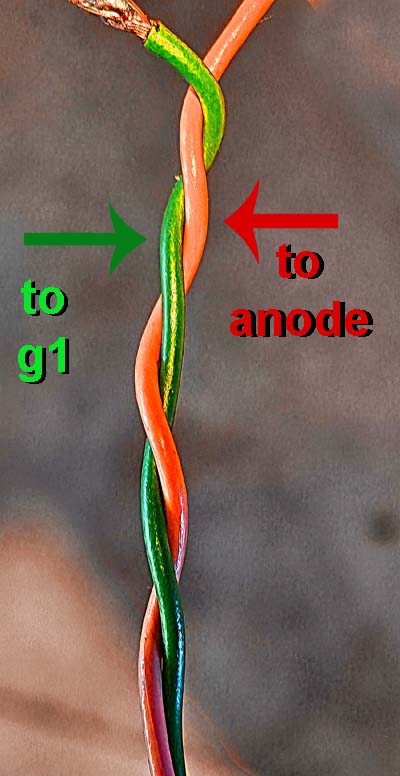 Une autre possibilité est d'utiliser des résistances d'arrêt dans la ligne de la grille écran. Je met toujours une résistance de 100Ω en série sur la grille écran, mais c'est plus une mesure pour protéger la lampe au cas où il n'y aurait plus de tension anodique (pour limiter le courant dans la grille écran). Augmenter la résistance à 1kΩ n'a pas eu beaucoup d'effet sur les oscillations, mais a diminué la puissance de l'ampli, la tétrode se met alors à fonctionner comme une triode à cause de la contre réaction interne. La solution a été un truc bien connu des anciens pour réaliser un condensateur de très faible valeur: twister le cable de la grille de controle avec le cable de l'anode. Il y a alors une contre réaction locale qui va réduire l'amplification pour les fréquences les plus élevées (plus de 20kHz). Pourtant cette mesure a permi d'éliminer les oscillations parasites. On peut également utiliser un tout petit condensateur <10pF/1000V. Le condensateur n'a été ajouté qu'au tube qui produisait les oscillations parasites. Ce n'était pas un problème de lampes, je les ai toutes remplacées par un lot d'un autre fabricant, c'était plutot causé par la construction même de l'ampli. Et peut être aussi parce que l'amplificateur travaillait à une tension plus élevée que la normale. Les oscillations ont disparu quand j'ai utilisé un variac pour réduire la haute tension. Malheureusement il n'était pas possible de remplacer le transfo pour réduire la haute tension. La procédure a permi de réduire presque complètement les oscillations amorties et le grésillement aux fréquences élevées a disparu. Le son n'était pas parfait pour un amplificateur de 40W utilisant de petites lampes (EL508) qui sont mieux à leur place dans un ampli de 20W. La qualité sonore était bonne, mais j'ai construit des amplis dont la qualité sonore était meilleure. |