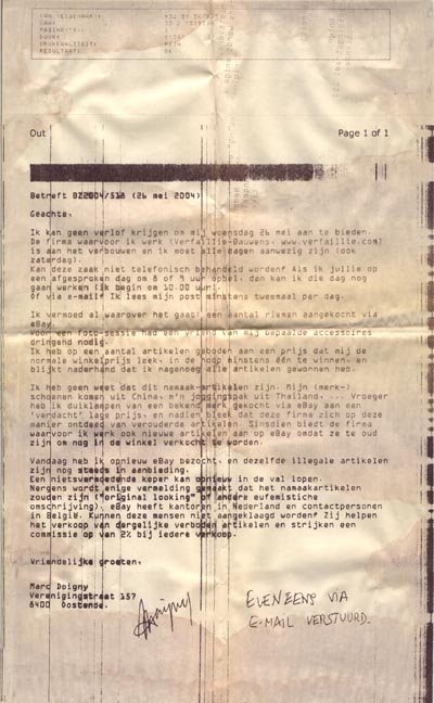 Mais avant le fax, nous avons eu le bélinographe. Cet appareil était principalement utilisé par les agences de presse pour transmettre des photos. La photo en noir et blanc était enroulée autour d'un tambour et était lue ligne par ligne par une cellule photo-électrique. L'image était transmise par ligne téléphonique en modulation de fréquence pour éviter les parasites. Puis est venu le fax, qui n'a vraiment percé qu'à partir des années 1980 avec l'adoption d'un standard numérique moderne le "groupe 3" qui permet une compression des données: une page peut maintenant être transmise en 15 secondes environ, alors qu'il fallait 6 minutes avec les anciennes normes. La lecture de la page se fait ligne par ligne, les images sont monochromes sans demi-tons et on comprime le flot de données. Les textes contiennent beaucoup de blancs qui sont comprimés: une ligne peut par exemple ne contenir que du blanc (ligne sans texte), c'est le codage MH (modified huffman). Un codage un peu plus rapide est le codage MR (modified read) qui tient compte de la corrélation entre les lignes: après avoir transmis une ligne (comprimée MH), le fax ne transmet plus que les différences par rapport à la ligne précédente. On retransmet une ligne en codage MH tous les 0.5mm pour éviter la propagation d'un eerreur. L'avantage de la compression est perdu quand il faut transmettre un document très dense. C'est le Japon qui a été pionnier dans le lancement du fax: il permet la transmission de textes écrits à la main, car l'écriture japonaise utilise des centaines de caractères. Le Japon continuera à utiliser le fax alors que les autres pays l'ont abandonné. Les premiers appareils utilisaient du papier thermique. Le papier noircissait aux endroits chauffés. C'est un système d'impression relativement simple, mais les documents ne sont pas très stables. Le texte a tendance à disparaitre et le papier à jaunir, comme vous le voyez sur l'exemple. Dans les entreprises, les documents reçus doivent être copiés sur du papier ordinaire si on veut les archiver. Certains fax sont déja multifonction: ils ont parfois une fonction de répondeur téléphonique et peuvent évidemment copier des documents (mais sur papier thermique uniquement). Puis sont venus les télécopieurs à impression à jet d'encre. Ces appareils sont plutot destinés à un usage intensif car si le papier est bon marché, le télécopieur est lui nettement plus cher. Le texte est imprimé avec de l'encre qui ne s'estompe pas. Puis sont venus les appareils multifonction à laser. Ils servent également d'imprimante de bureau (connection ethernet). Avec la fonction scanner on peut envoyer des messages par email contenant la page scannée au format TIFF (une des variantes du format TIFF est le format fax). Le fax était d'un usage très courant dans les années 1990. Les conversations téléphoniques étaient souvent confirmées par un fax (commande, rendez-vous,...). Le fax permet de transmettre des textes signés qui ont valeur juridique. Le fax expéditeur peut imprimer un avis de réception. L'utilisation du fax a diminué à partir de l'essor de l'internet permanent. Il est plus aisé d'envoyer un document par mail, qui peut être lu sur tout ordinateur et ne nécessite pas une ligne téléphonique classique. |