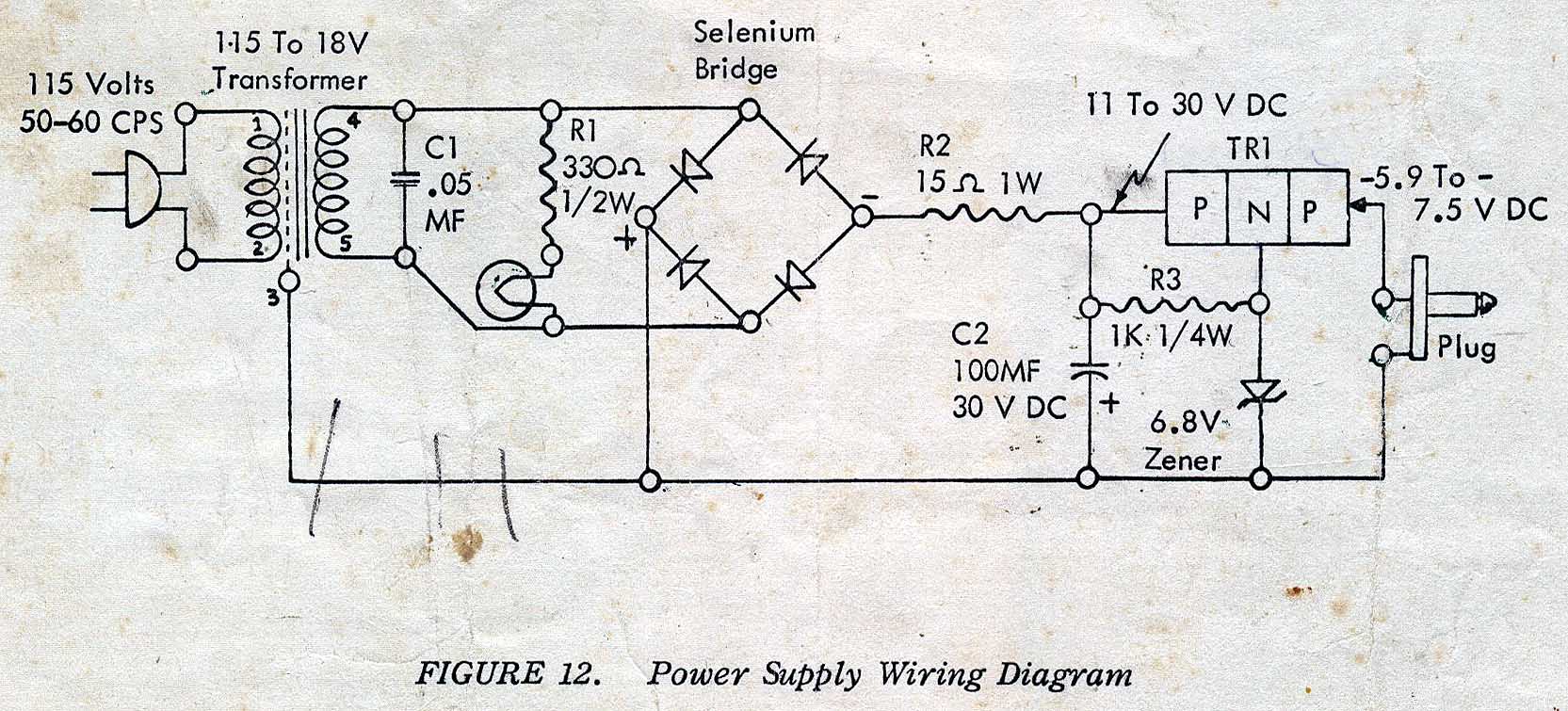 Les appareils récents ont des condensateurs electrolytiques tout juste bons pour tenir deux ans. Evidemment, ils sont mis à rude épreuve avec les alimentations à découpage, mais placer un petit condensateur polyester en parallèle aurait permis d'absorber les impulsions hautes fréquences (si néfastes pour les condensateurs électrolytiques). Les fabricants préfèrent fabriquer des appareils qui tiennent tout au plus deux ans. Le condensateur 50 + 50µF 350/385V date de novembre 1966 et fonctionne encore parfaitement, tout comme le poste de radio qu'il alimente. Les redresseurs au sélénium ont été inventés en 1933 et ont remplacé les tubes redresseurs dans certaines applications basse tension. Chaque élément pouvait supporter une tension inverse de 20V, un élément était juste suffisant pour charger une batterie de 6V. Pour obtenir une tension plus élevée, il fallait mettre plusieurs éléments en série.