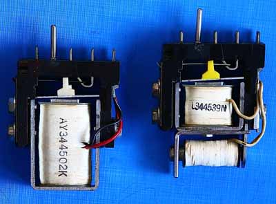 Photos à droite: relais à aiguilles utilisés dans les anciens centraux téléphoniques et ordinateurs électro-magnétiques (IBM)