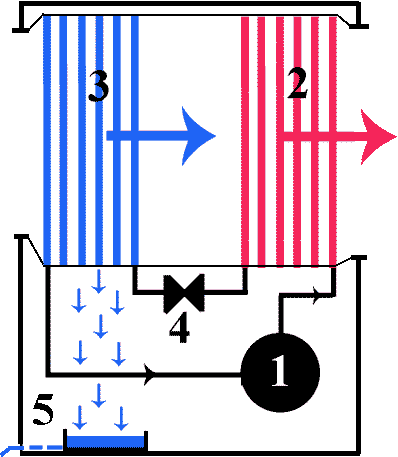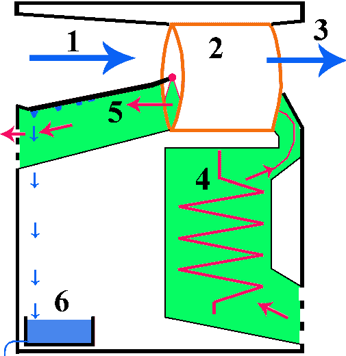 Les deux types de déshumidificateurs ont une consommation pratiquement identique. Le gros consommateur dans le déshumidificateur ménager est le compresseur frigorifique, tandis que dans l'installation industrielle il s'agit de la résistance pour chauffer l'air de régénération. A droite une image qui montre l fonctionnement du rotor adsorpeur d'humidité.