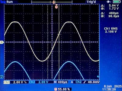Il n'y a ici rien à redire, le signal en sortie est de 3.1Vrms, donc un peu plus de 8Vpp. Le clipping est graduel et ne devrait donc pas s'entendre. L'amplitude du signal est de 3V, donc environ 4× le signal nominal sur une entrée cinch.