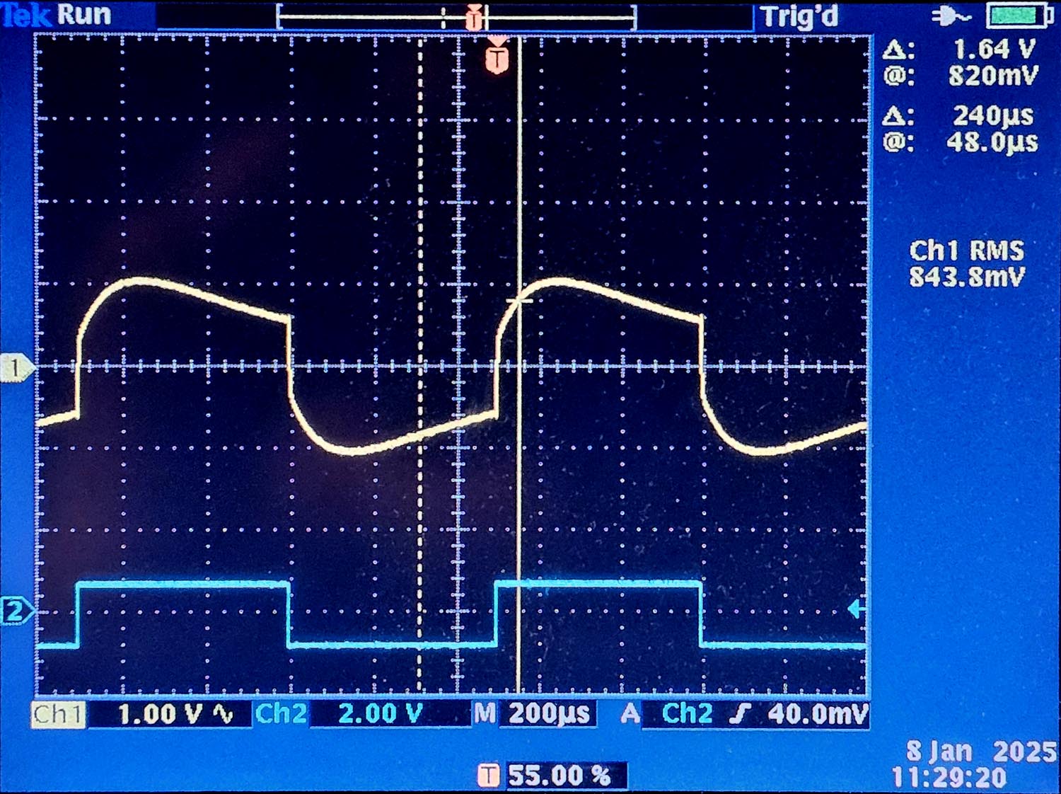 Le signal en position aigües et basses au maximum. Ici aussi l'influence sur les basses est plus importante et certains amplificateurs et enceintes peuvent avoir du mal à reproduire ces fréquences basses.