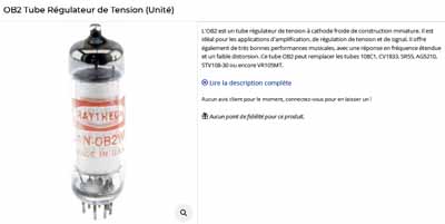 Helaas, le site devient de plus en plus esotérique, lisez par exemple la description d'un tube régulateur de tension (une vulgaire diode à gaz néon): L'OB2 est un tube régulateur de tension à cathode froide de construction miniature. Il est idéal pour les applications d'amplification, de régulation de tension et de signal. Il offre également de très bonnes performances musicales, avec une réponse en fréquence étendue et un faible distorsion. Ce tube OB2 peut remplacer les tubes 108C1, CV1833, SR55, AG5210, STV108-30 ou encore VR105MT.Une diode zener qui a "de très bonnes performances musicales" et une "réponse en fréquence étendue et un faible distorsion"... C'est comme si je vous disais qu'une planche en bois "permet la cuisson rapide des aliments" et garantit de "garder toutes les vitamines et les minéraux". Et une diode, même à gaz nobles (c'est autre chose que ce qui sort de votre derrière) n'amplifie pas... Sur une autre page on peut lire que "Ce tube dispose d'une connectique à 9 pins"... Quel tordu du cu a pondu çà? Dans le temps on disait que le tube utilisait un soquet B9A et tout le monde savait de quoi il s'agissait. Et l'histoire continue: j'ai testé pour vous un récepteur bluetooth avec lampes thermo-ioniques... |