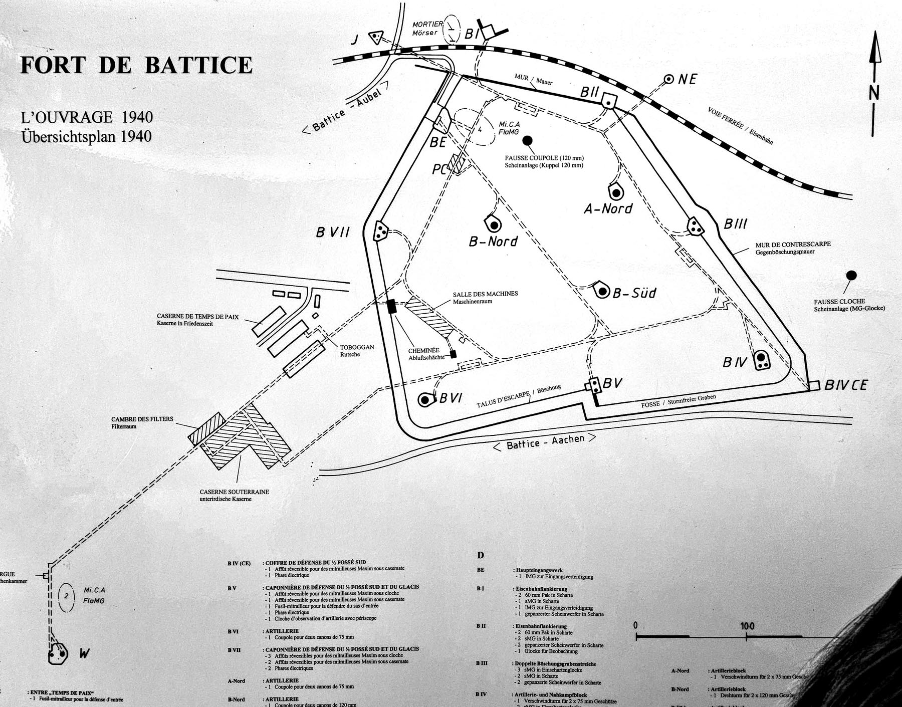 Forten worden over het algemeen op een hoog terrein gebouwd om uitzicht te hebben op de omgeving. Fort Battice werd diep onder de grond gebouwd en de uitgegraven aarde werd gebruikt om steile hellingen te creëren die de nadering van tanks moesten blokkeren. Het fort dat het best gepositioneerd was om België te beschermen, was Fort Eben-Emael, maar dat hield niet lang stand. Sterker nog, het was het fort dat zich het snelst overgaf.