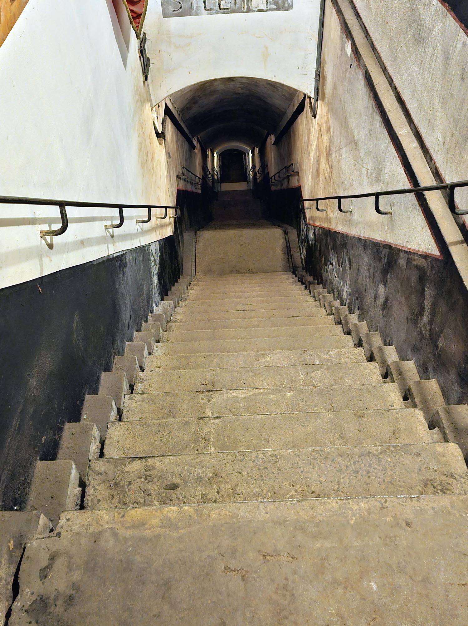 Het bezoek van het fort begint vrij abrupt met een reeks trappen die je naar de tunnels brengen.