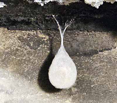 En op het einde van de rondleiding worden we geconfronteerd met een reeks spinnennesten. De jonge spinnen zitten in het coccon, ook dat wist de gids ons te vertellen.