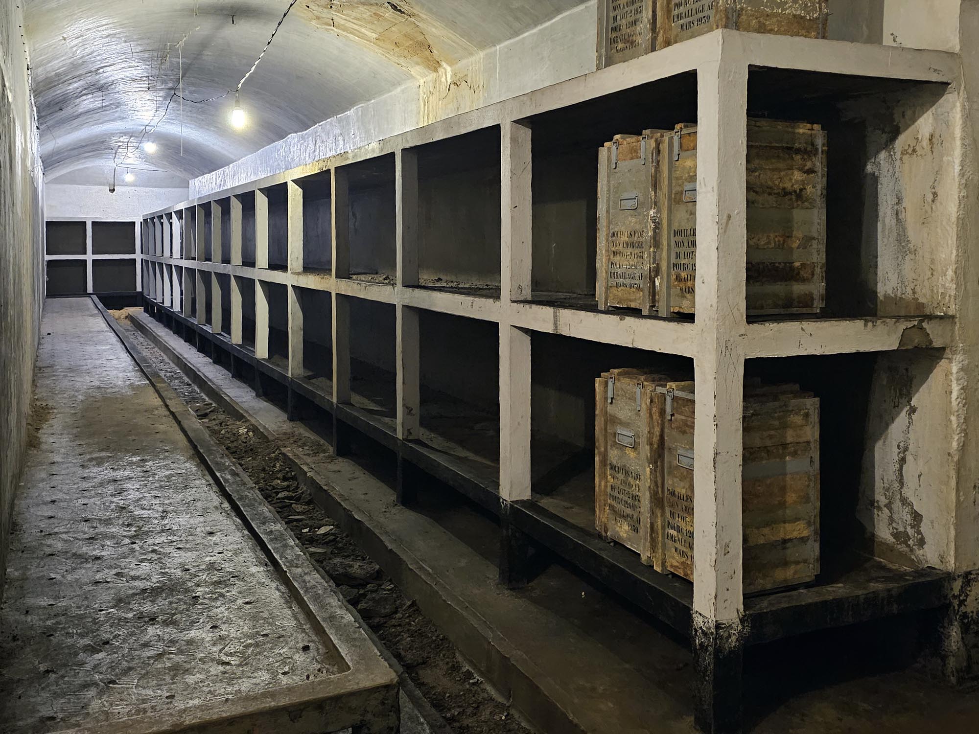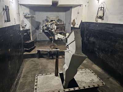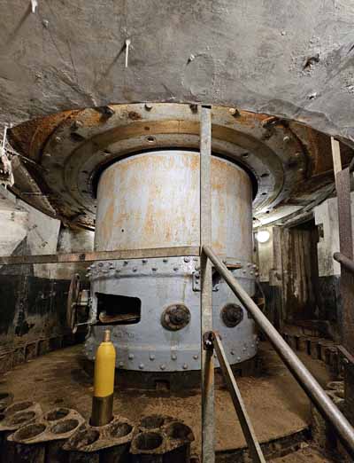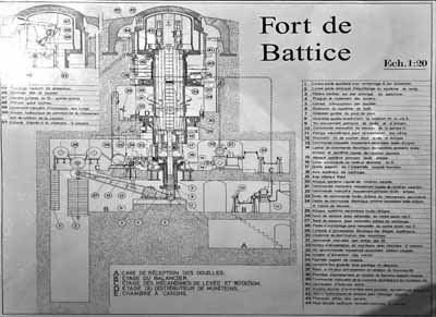 Les canons du fort de BatticeLes galeries se trouvent à -30m et il faut transporter les munitions du bas vers le bunker de tir par des monte-charges. Ils ressemblent à ceux d'Eben Emael, ces deux forts ont été construits presque simultanément.Il y a peu de place dans les bunkers de tir: plus le bunker est grand et plus il faut couler du béton pour le protéger. Dans le bunker de tir on ne trouve que le strict nécessaire.