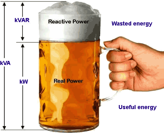 De wikkeling van een transfo is bijvoorbeeld berekend voor een stroom van 1A. Indien de transfo op 240V werkt, kan de transfo een lamp van 240W voeden. Dezelfde transfo kan echter een motor van slechts 165W voeden. Door de faseverschuiving kan de motor slechts een deel van het beschikbaar vermogen opnemen. De stroom is nochtans 1A bij een vermogen van 165W. Enkele extra eenheden: