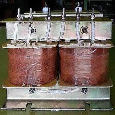 “Open delta” transformator![]() Om de belasting nog beter te verdelen kan men met een open delta tranformator werken. Dit is een driefasige transformator zonder midden-wikkeling (zie foto links).