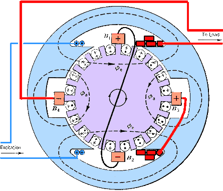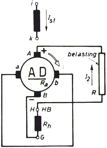Afbeelding 1: een normale dynamo levert een vermogen van bijvoorbeeld 10kW (een spanning van 100V over een weerstand van 1Ω) met een ingangsvermogen van 100W, een versterking van 100×. Dit is de standaard-versterking die bekomen wordt met een dynamo: met een veldvermogen van 100W kan men 10kW ankervermogen bekomen.