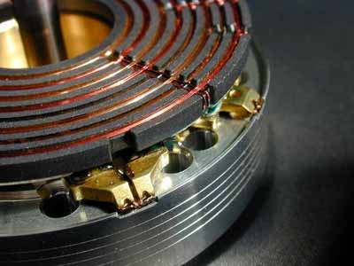 De referentiespanning wordt door middel van glijcontacten overgebracht