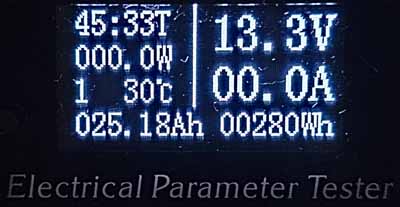 Een andere schakeling om een negatieve spanning op te wekken (voor een RS-232 verbinding) staat hier: negatieve spanning voor een RS-232 verbinding. Deze schakeling werkt op 5V, de spanning voor een processor. De schakeling levert -2mA, voldoende voor een RS-232 verbinding die normaal een afsluitweerstand van 4.7kΩ heeft. Uiteindelijk is de module dan toch niet gebruikt. De module leek heel praktisch, met een aanduiding van de spanning, de stroom, de lading en de energie, maar spijtig genoeg meet de module slechts in één richting, terwijl een batterij zowel geladen als ontladen kan worden. Een voorbeeld: mijn lithium-ijzer-fosfaat batterijen die ik gebruik om de stroom van mijn zonnepanelen op te slaan hebben een zeer hoog coulombisch rendement (1Ah laadstroom produceert 1Ah ontlaadstroom). Maar hoe zit het met het rendement in vermogen? Het laden gebeurt met een hogere spanning dan het ontladen, er is dus onvermijdelijk een verlies. Maar de meter meet slechts in één richting: ik had twee meters moeten gebruiken, één voor de laadstroom en één voor de ontlaadstroom. |