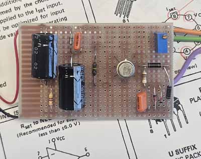 Met een uitgangsignaal van enkele mV is het niet mogelijk een indicator "waakvlam aanwezig" te laten branden: men zou een tweede op-amp moeten gebruiken om het signaal van 5mV naar 2.5V te brengen om een high brightness led te laten branden. Dit kan eventueel gebeuren met een standaard op-amp zoals een LM741 of een LM111 (comparator). Ik heb hier echter gekozen voor een zo laag mogelijk gebruik (het is de zener die het meste stroom trekt). |