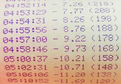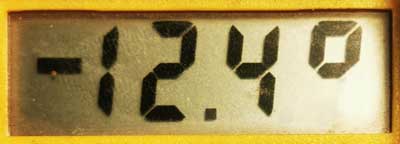 De tabel hierboven geeft eerder een indicatie van de temperatuur, met de metingen die na een uur gedaan worden. Een nacht later is de temperatuur nog wat verder gezakt en de compressor schakelt een keer per uur in om de temperatuur te bewaren. De isolatie van de koelkast is zeer goed. ![]()